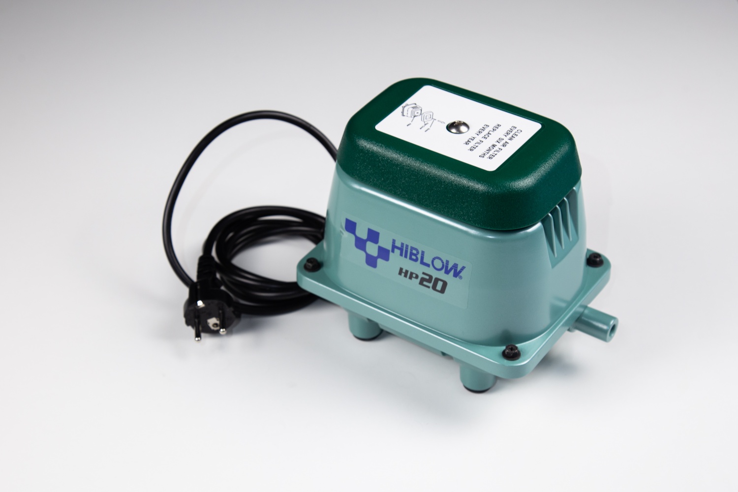 Компрессор (воздушный насос) HIBLOW HP-20 производительностью от 20 л/мин при давлении 98 мбар (9,8 кПа).