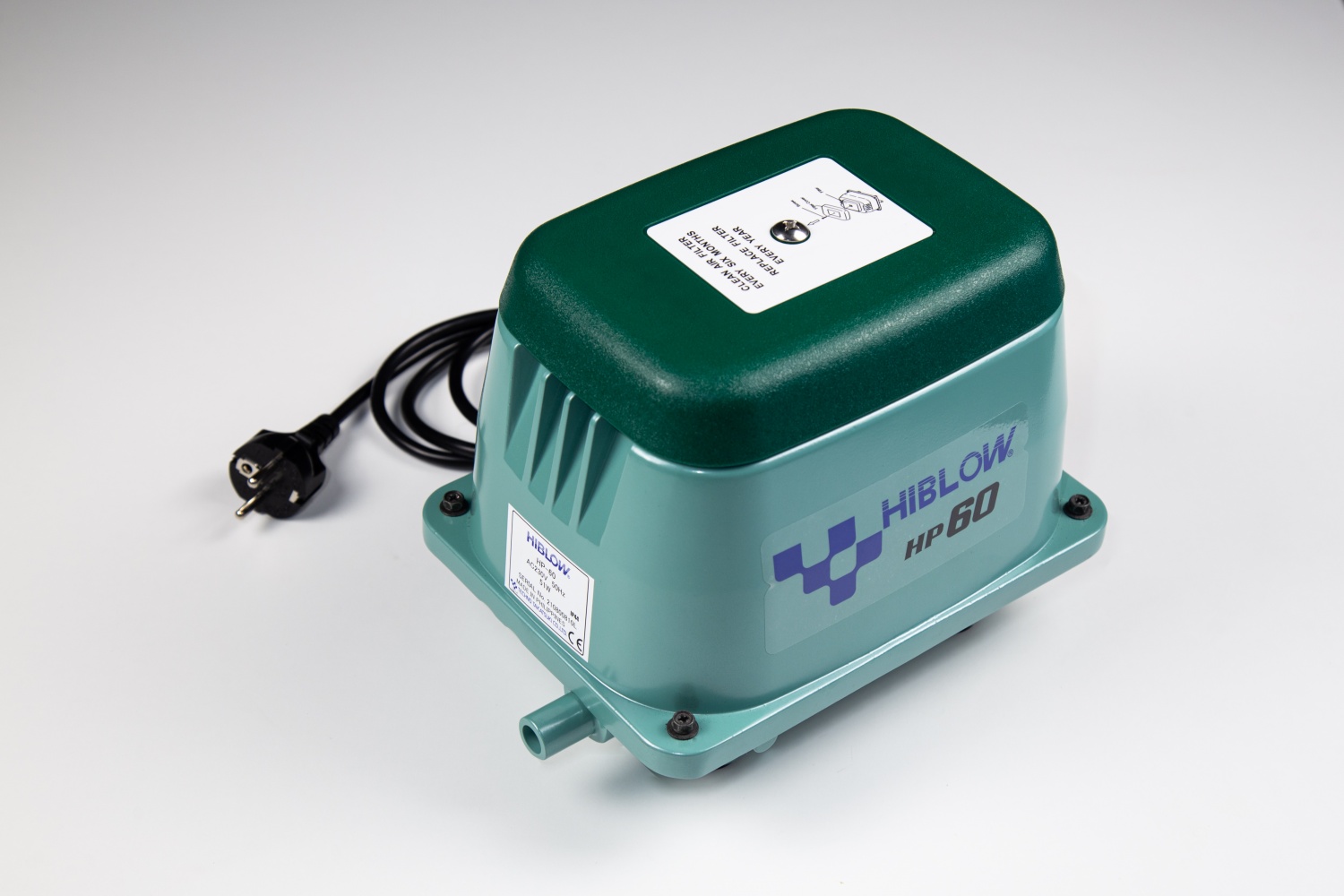 Компрессор (воздушный насос) HIBLOW HP-60 производительностью от 60 л/мин при давлении 147 мбар (14,7 кПа).