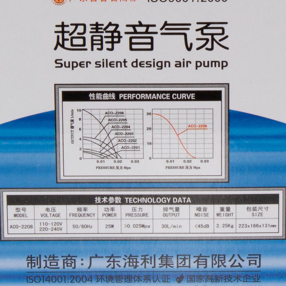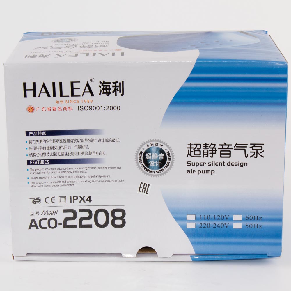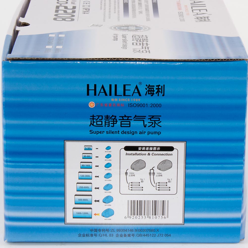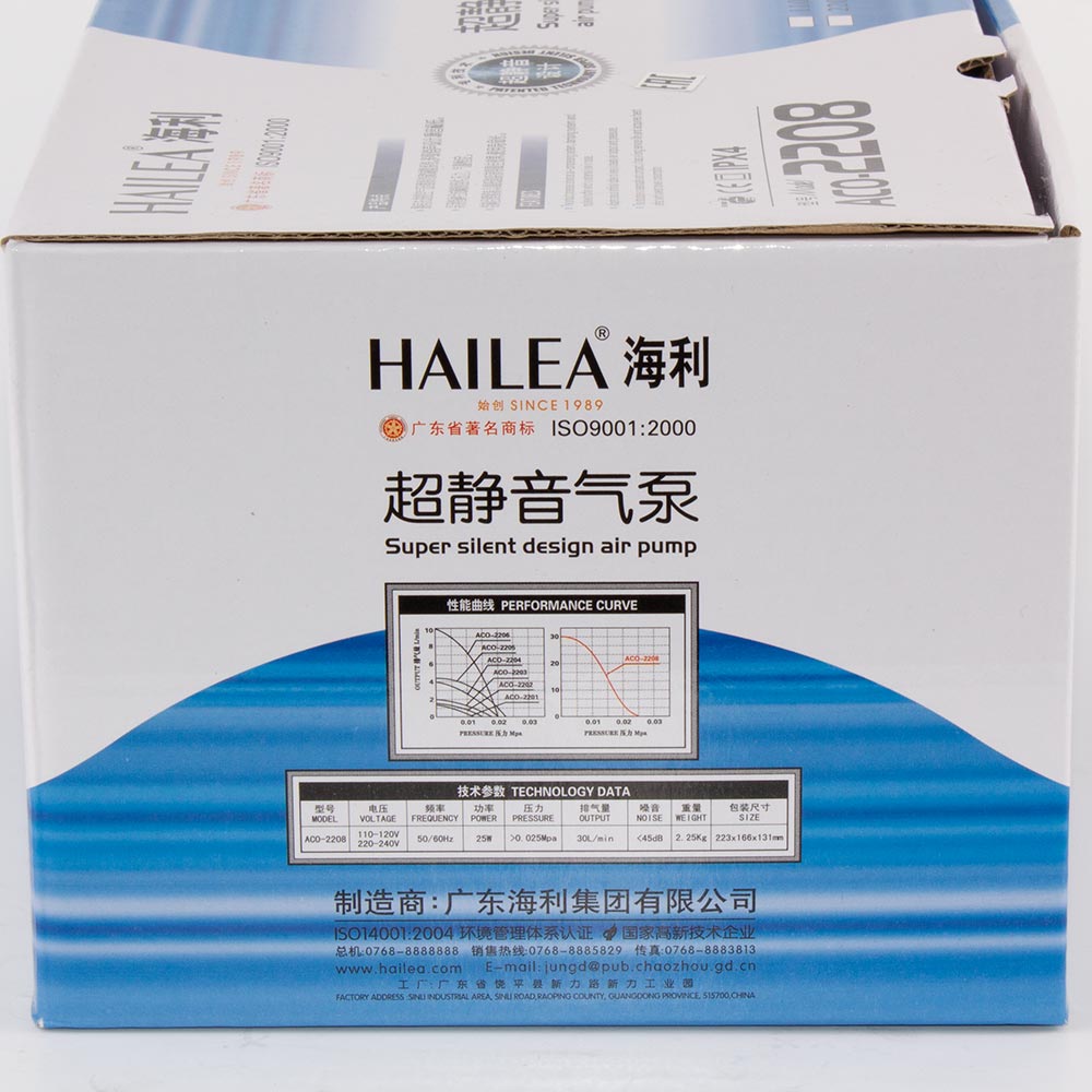 - Компрессор Hailea Super silent 22 - компактный и экономичный, поэтому он прослужит вам длительный срок, при самом низком энергопотреблении.