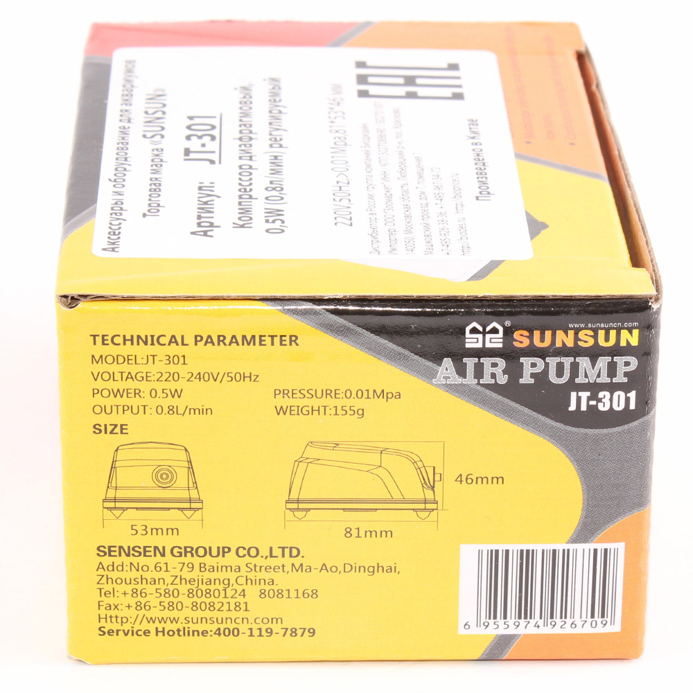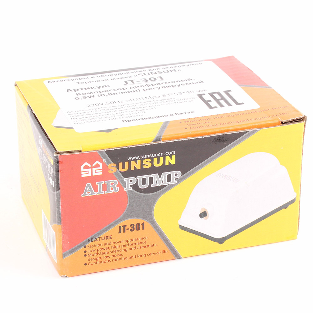 - Компрессор от легендарного бренда SUNSUN, который больше тридцати лет является мировым лидером в сфере производства оборудования для прудов и аквариумистики.