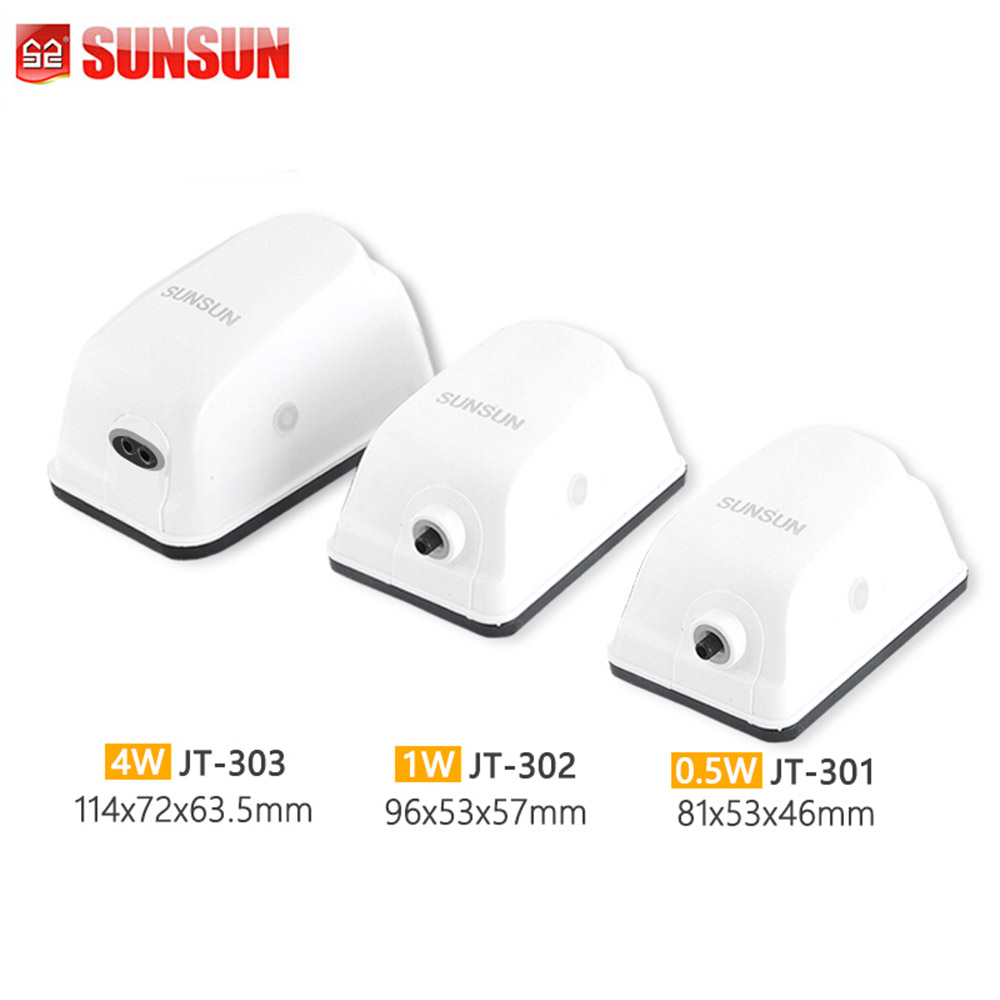Бесшумный пьезо-компрессор Sunsun JT-301 с регулировкой потока для аквариума 10-50 л.