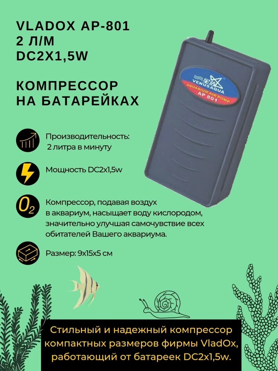 КОМПРЕССОР VLADOX AP-801, НА БАТАРЕЙКАХ, ОДНОКАНАЛЬНЫЙ, 2 Л/М , DC2X1,5W