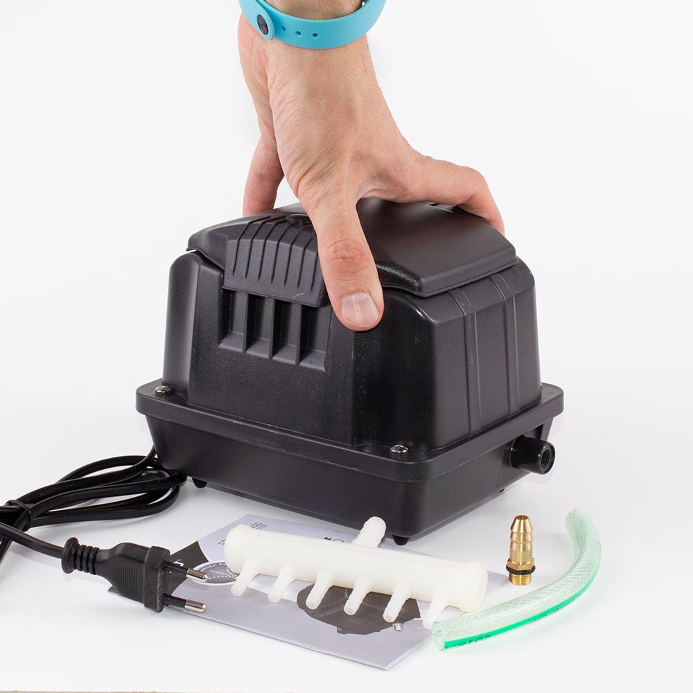 - Компрессор универсальный, подходит для аквариумов, прудов, септиков, рыбных хозяйств, ресторанов с живой рыбой, пузырьковых панелей, коптилен.